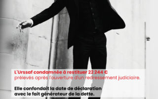 L’Urssaf condamnée à restituer 22 244 € prélevés après l’ouverture d’un redressement judiciaire. Elle confondait la date de déclaration avec le fait générateur de la dette.